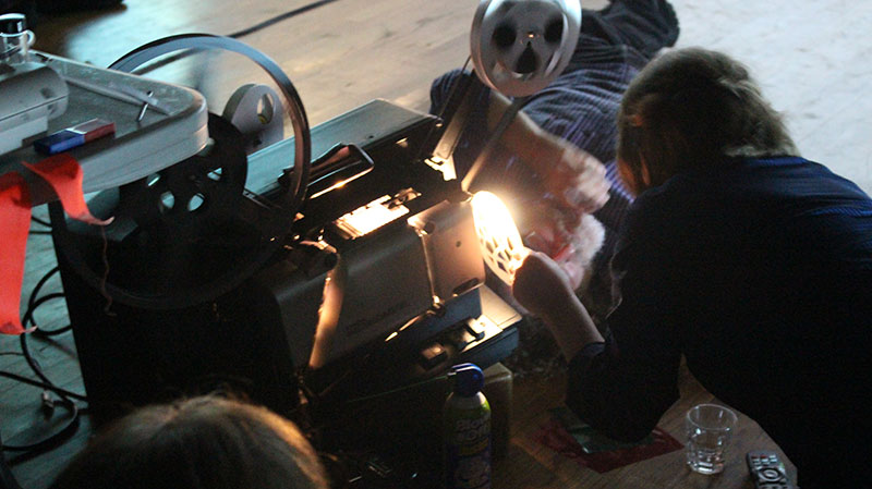 This special collaborative performance included visual contributions by Timeless Motion artists Paul Clipson, Keith Evans, Kerry Laitala, Kathleen Quillian, Scott Stark and Mark Wilson with sound by Cyrus Tabar. Oscillating between darkness and light, stillness and movement, sound and silence, the performers, through a variety of formats and media, used their legerdemain to conjure and transform sounds and images in a cinematic séance. Using the syntax of an exquisite corpse, the Temescal Art Center was illuminated, haunted, fractured and activated through the synchronies of chance operations and the summoning of ephemeral, audio-visual conversations dialed in through magnetic frequencies and celluloid alchemy.